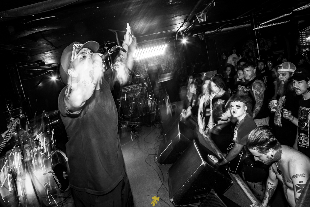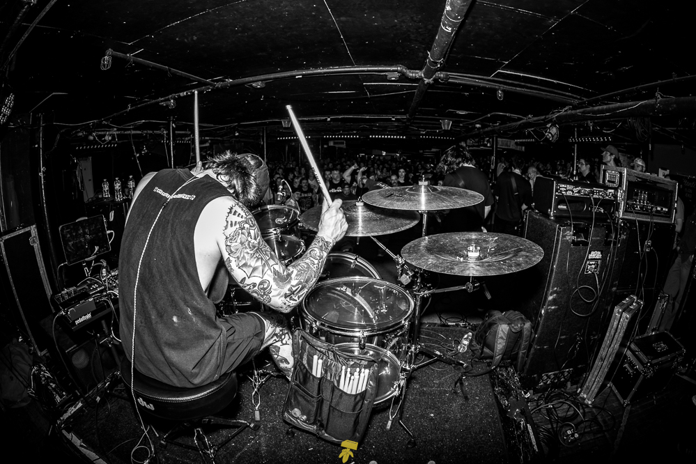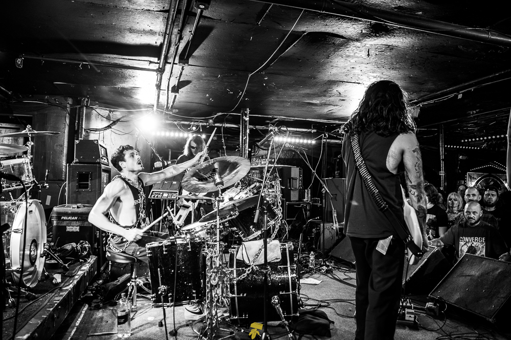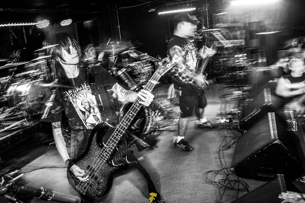 Next, I would find myself in the Downstairs room for a grind/hardcore throwdown with an action-packed lineup of Clique, Jarhead Fertilizer, Kruelty, Full of Hell, and Harm’s Way. California political actionaries Clique would kick the doors open; they have recently joined the ranks of Closed Casket Activities to see their first LP and subsequent EPs on vinyl for the first time. Grindcore misfits Jarhead Fertilizer would then rattle the crowd into a frenzy. Japan’s Kruelty is an ignorant force of the most doomed hardcore your ears can handle, their last EP ‘Profane Usurpation’ was also issued by Closed Caskets. Full of Hell dropped a new EP, ‘Broken Sword, Rotten Shield,’ last month via CCA, which also issued last year’s ‘Coagulated Bliss.’ Headliners Harm’s Way continued the ruckus until the very last snare hit. Their second album, 2011’s ‘Isolation’ and the 2010 EP ‘No Gods, No Masters,’ were released by the aforementioned label before moving on Deathwish and Metal Blade.