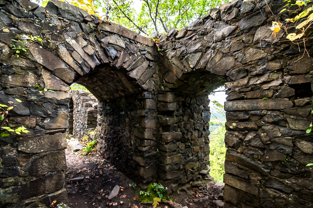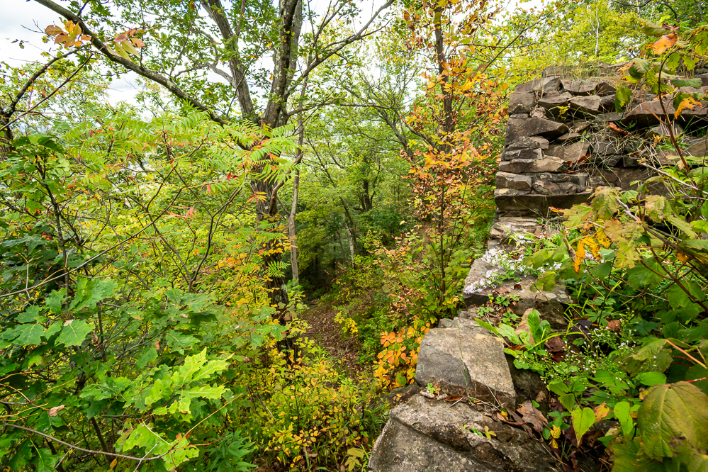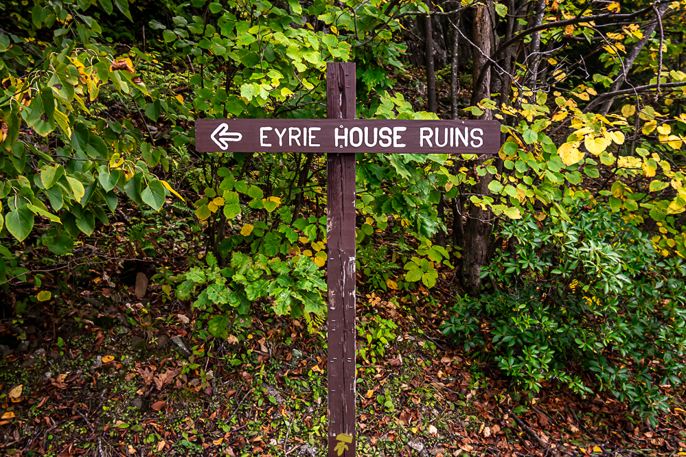 The Metacomet-Monadnock Trail and the New England Trail both share the path to access the Eyrie House Ruins. Alternatively, you can take Christopher Clark Road, which does not allow vehicle access, making for an easier walk. By taking the trail, you are afforded a couple of scenic points, Goat Peak and Dry Knoll. Combining the John McCool Trail makes 3.5 mile loop, if parked along the Upper Pavilion on Reservation Road by the Visitor Center.