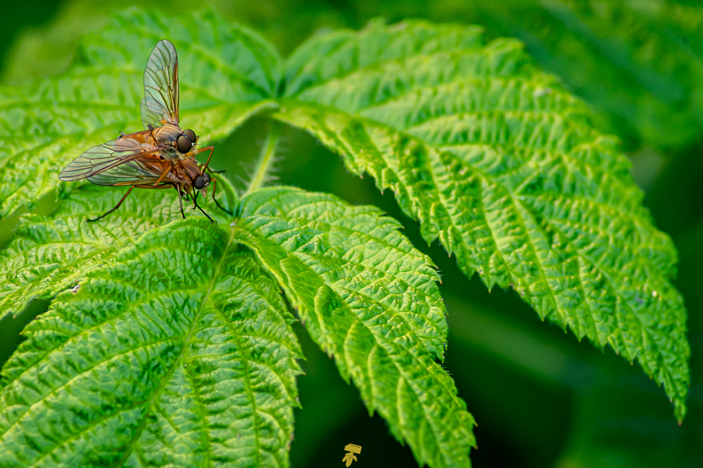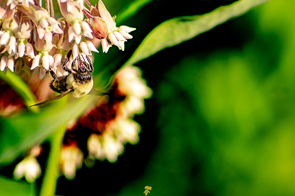 Insects include a Great Spangled Fritillary, a species of Brush-Footed Butterfly. Among the many bees buzzing around the meadow of Milkweeds, I snapped a shot of a Brown-Belted Bumble Bee. Also saw a Four-Spotted Chaser, a type of Skimmer part of the Libellulidae family, clinging to a small tree branch. Skimmers are a type of dragonfly; essentially, all skimmers are dragonflies, but not all dragonflies are skimmers. Spotted on a leaf of an Oregon Ash tree, a Eriothrix Rufomaculatus, a species of fly in the family Tachinidae, commonly known as tachinid flies, takes a break from the summer heat. …And also caught a duo of Marsh Snipe Flies snuggling.